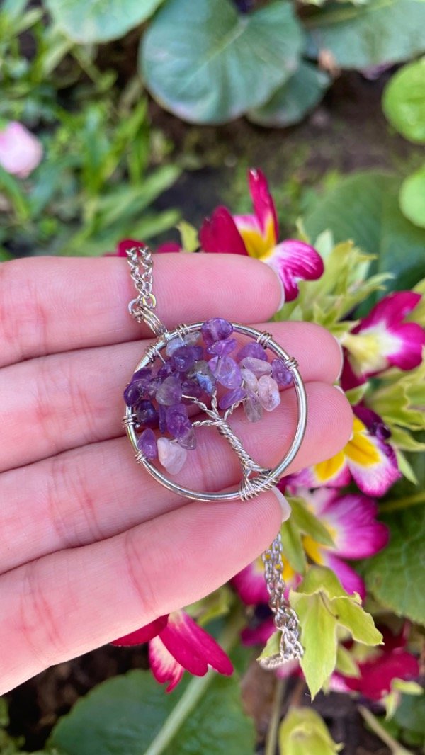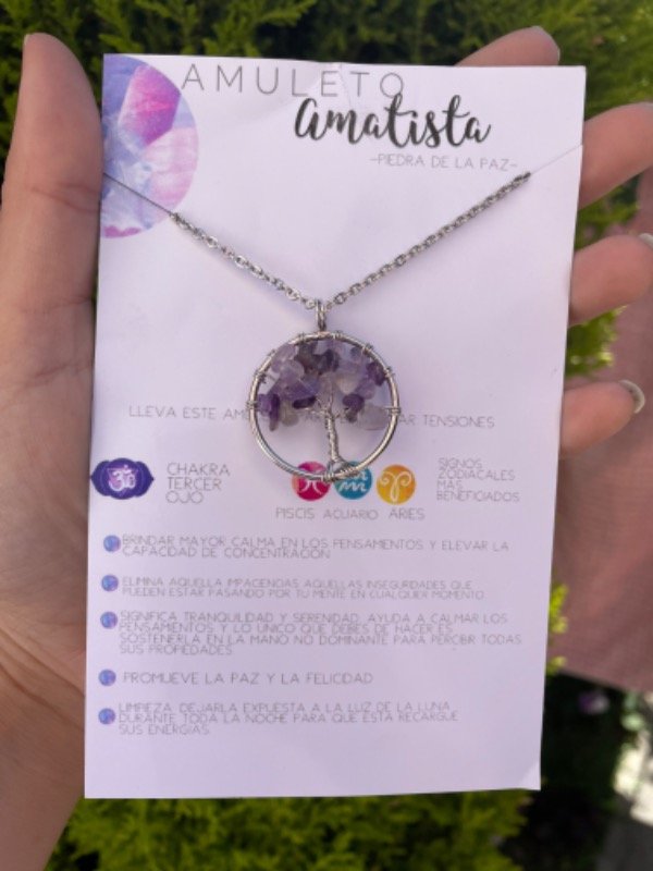 DIÁMETRO APROXIMADO 3 CM. Dije de metal con cadena de acero quirúrgico, el tamaño y el color de las piedras Pueden variar puesto que son productos naturales.