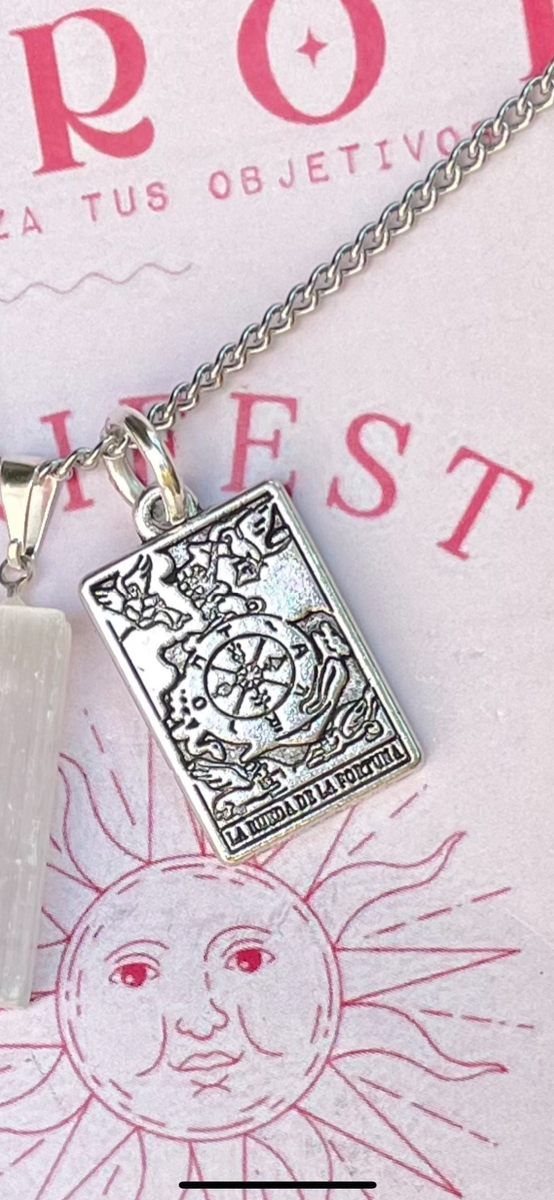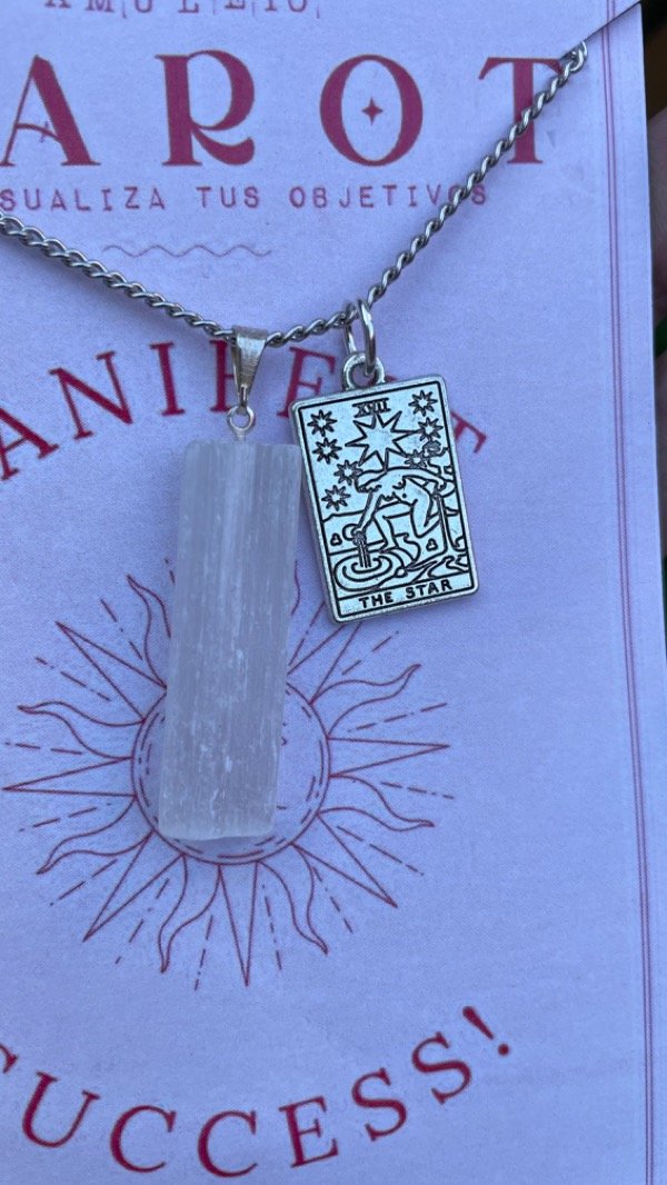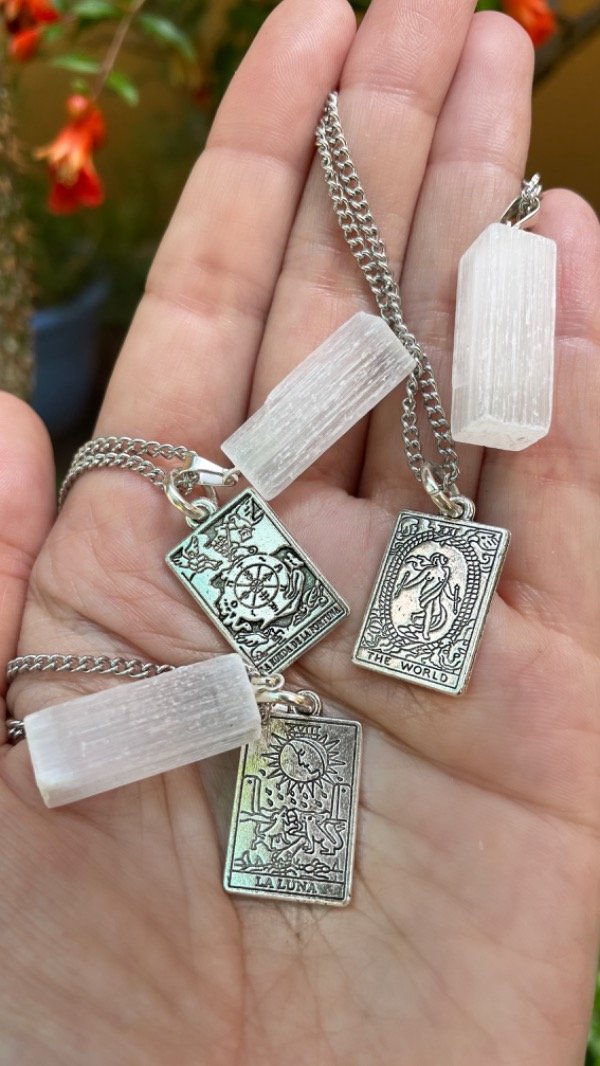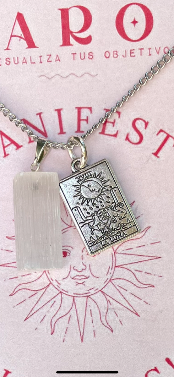 Amuleto Tarot con selenita y Cadena de acero quirurgico